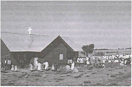 Maaseudulla sijaitsevien matalan kustannustason kirkkojen rakentamisen käytännön toteutus hoidettiin siten, että synodi tarjosi aaltopellit, naulat ja 2 000 birriä käteistä.[76] Paikkoihin, joissa ei ollut paikallisia kirvesmiehiä saatavilla rakentamaan ristin muotoista kattoa, tarjottiin myös kokenut kirvesmies. Muu työ oli paikallisen seurakunnan käsissä.