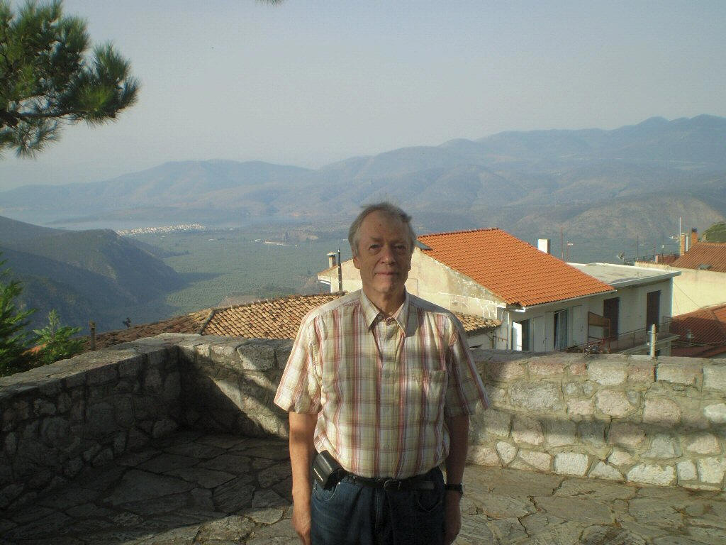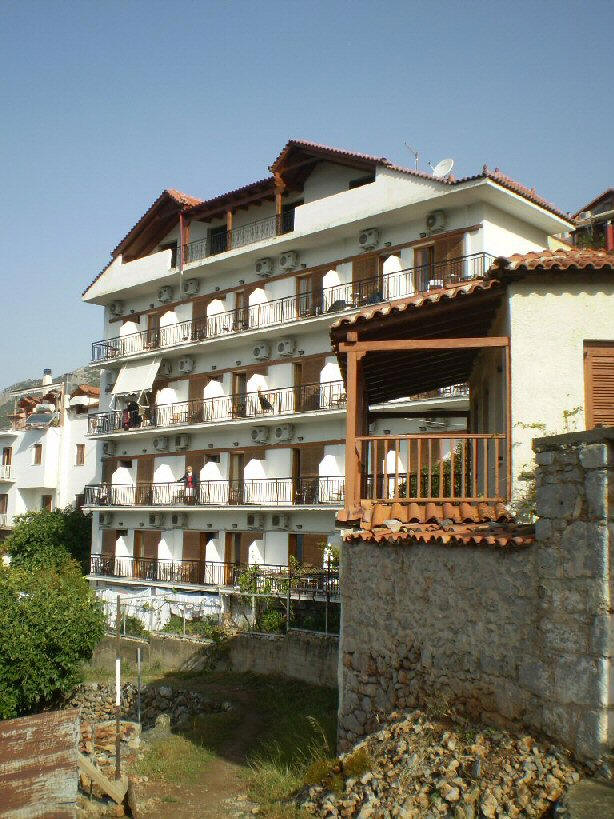 ![]() Aamulla heräsimme tähän maisemaan (kuva oikealla). Olemme Delfoissa, antiikin aikaisessa kaupungissa Fokiin maakunnassa Parnassos -vuoriston juurella, Acropole Delphi-hotellissa. Hotellin parvekkeelta avautui maisema Parnassos -vuoren juurelta kohti Korintin lahtea, joka häämöttää horisontissa. Lahden suulla on muinainen Delfoin satama Kirra, linnoitettu kaupunki, joka vartioi mereltä tulevaa liikennettä. Kirran asukkailla oli tilaisuus ryöstää Delfoin oraakkelia kuulemaan tulleita pyhiinvaeltajia. Hotellin alapuolelta lähti Kirraan ja Itéaan johtava polku. Minä tyydyin vain kuvaamaan hotellia koko komeudessaan. Hotellista ylöspäin kiivetessä saapuu todennäköisesti Pyhän Nikolaoksen kirkon näköalatasanteelle (kuva alla), josta avautuu huikea näköala Korintin lahden suuntaan, siis Kirran ja Itéan seudulle. |