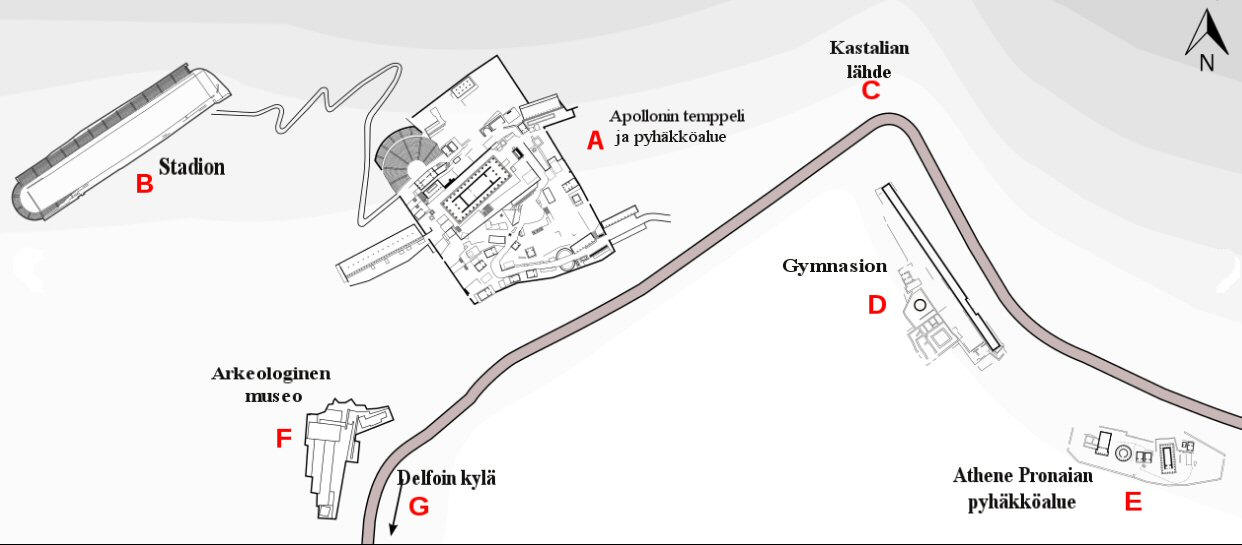 kuvassa. Tämä pyhäkkö oli omistettu Athene Pronaialle,