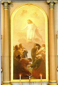 Lappeen Marian kirkko on helatorstain kirkko. Enpä luule, että kovin monessa kirkossa on alttaritauluna helatorstaita kuvaava tapahtuma, mutta täällä on.  Alttarimaalaus tekee Lappeen kirkosta ylösnousemuksen pääsiäisen kirkon toisin kuin monissa muissa kirkoissa, joissa ristiinnaulittu Kristus hallitsee alttaria. Täälläkin taisi aiemmin olla ristiinnaulittua esittävä maalaus, kunnes Aleksandra Frosterus-Såltin maalasi 1887 edessämme olevan alttarimaalauksen. Evankelista Markus kuvaa päivän aihetta hyvin pelkistetysti: Kun Herra Jeesus oli puhunut heille tämän, hänet otettiin ylös taivaaseen ja hän istuutui Jumalan oikealle puolelle.