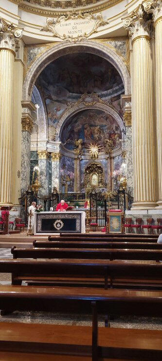 Alttarin takana näkyy kuuluisa Neitsyttä ja lasta kuvaava ikoni. |