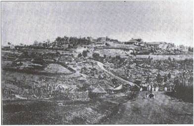 Addis Abeba 1904. Mäellä Menelikin palatsi.