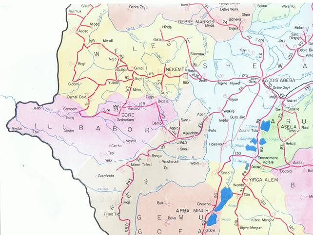 terässilta. Jimmasta etelään vievä tie valmistui 1962. Tietä Mizan Teferiin ja