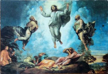 Kuuden päivän kuluttua Jeesus otti mukaansa Pietarin, Jaakobin ja Johanneksen ja vei heidät korkealle vuorelle yksinäisyyteen, pois toisten luota. Siellä hänen ulkomuotonsa muuttui heidän nähtensä ja hänen vaatteensa alkoivat hohtaa niin kirkkaan valkoisina, ettei kukaan vaatteenvalkaisija maan päällä voi sellaista saada aikaan.