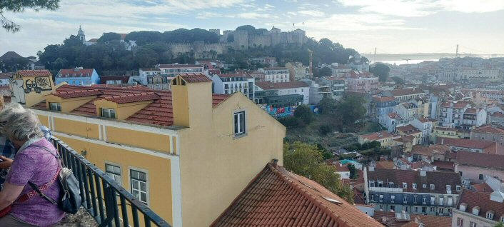 Näkymä yli kaupungin kattojen ei vedä vertoja linnan näköaloille, mutta tämä on suosittu paikka alkuillasta, kun pariskunnat tulevat istumaan iltaa kahvilapöytiin mäntyjen siimekseen. Miradouron takana on 1271 perustettu augustinolainen luostari, joka rakennettiin uudelleen maanjäristyksen jälkeen. Muinoin kukoistanut rakennusryhmä on nykyisin armeijan käytössä, mutta kirkkoon, Igreja da Graçaan pääsee vielä vierailemaan.