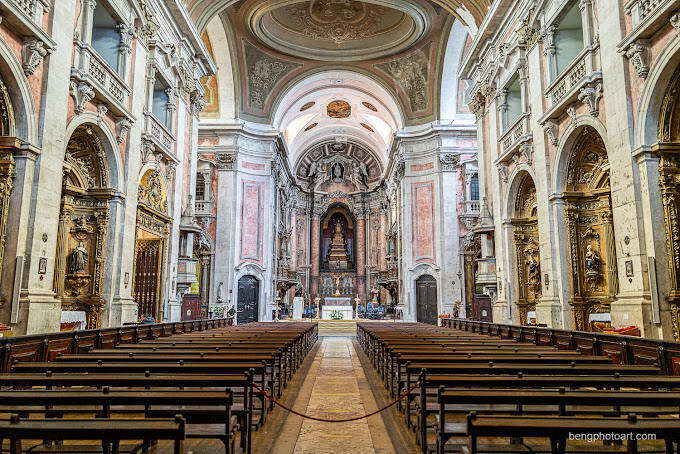 Pyhä Vincentius julistettiin Lissabonin suojeluspyhimykseksi vuonna 1173, kun hänen jäänteensä tuotiin Algarvesta Etelä-Portugalista kirkkoon, joka sijaitsi tällä paikalla kaupungin muurien ulkopuolella (fora). Italialaisen arkkitehdin Filippo Terzin suunnittelema nykyinen kirkko (1627) edustaa hillittyä ja symmetristä italialaisrenessanssia luonnonvalkoisine julkisivuineen. Sen molemmin puolin kohoaa torni, ja pääoven päällä on Augustinuksen, Sebastianuksen ja Vincentin patsaat. Sisällä huomio kiinnittyy heti Machado de Castron barokkiseen alttarikatokseen ja viereisiin luonnollisen kokoisiin puuveistoksiin.