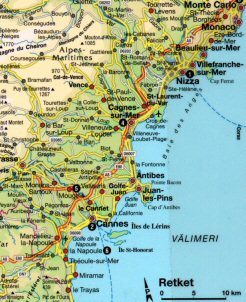 rannikolla (Cote d’Azur) on useita mielenkiintoisia kohteita. Tärkeimpiä